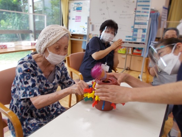 風船黒ひげゲーム以外にも曜日によっては対抗戦で「豆リレー」も実施しました。 ピーナッツや枝豆などの豆 […] -