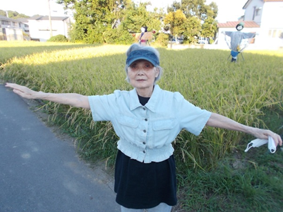 この案山子をどうしても紹介したくて、車を停めて一緒に写真を撮りました。